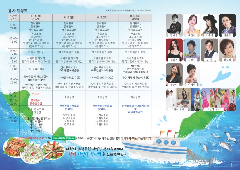 제 22회 사천시 삼천포항 자연산 전어축제 리플릿 페이지 정보 작성자 관… 댓글 0건 조회 1,155회 작성일 25-08-01 10:14 본문 제 22회 사천시 삼천포항 자연산 전어축제 리플릿 목록 다음글제21회 사천시 삼천포항 자연산 전어축제 일정 24.07.08 댓글목록 댓글목록 등록된 댓글이 없습니다.