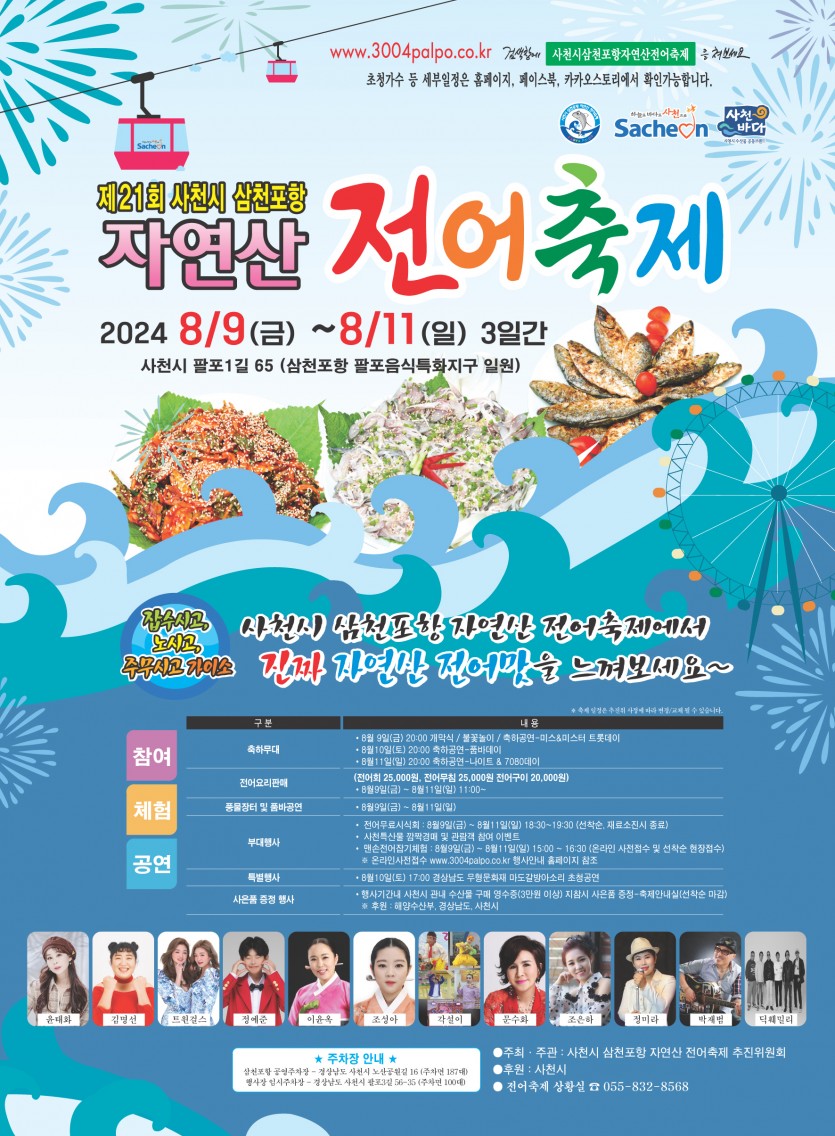 제21회 사천시 삼천포항 자연산 전어축제 개최 일정 페이지 정보 작성자 관… 작성일24-07-09 10:04 조회3,360회 관련링크 이전글 다음글 목록 본문 행사 포스터 이전글 다음글 목록
